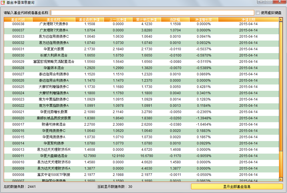 2、使用金融數(shù)據(jù)平臺(tái):許多金融數(shù)據(jù)平臺(tái)如東方財(cái)富網(wǎng)、同花順等都會(huì)提供基金凈值查詢服務(wù),投資者可以通過這些平臺(tái)查詢基金的最新凈值、漲跌幅等數(shù)據(jù)。
