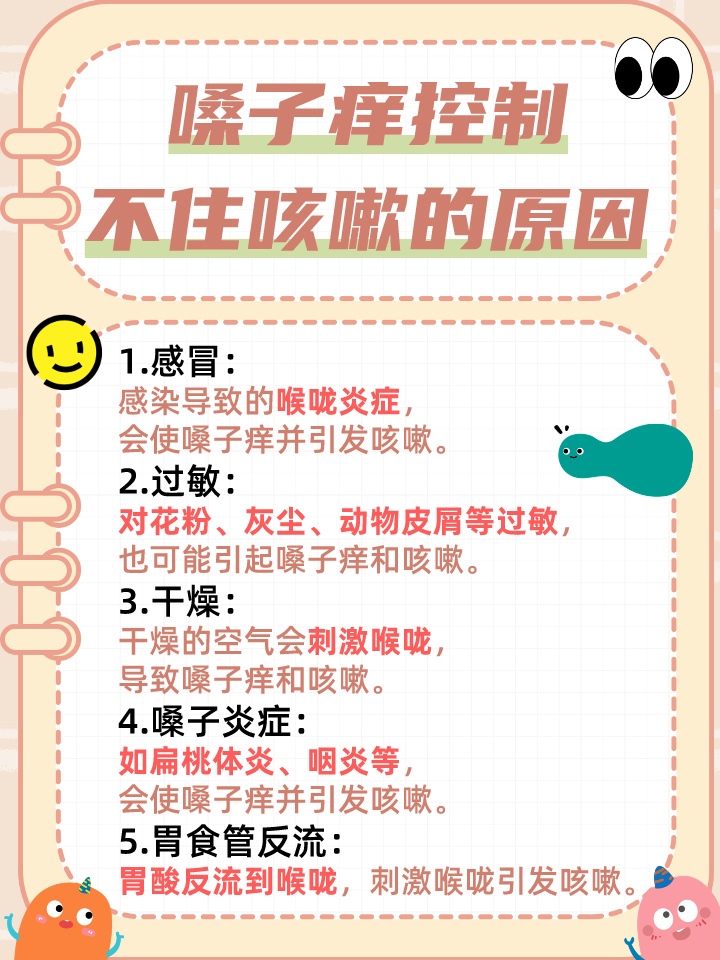 4、其他原因:如咽喉炎、哮喘等也可能導(dǎo)致嗓子干癢咳嗽。
