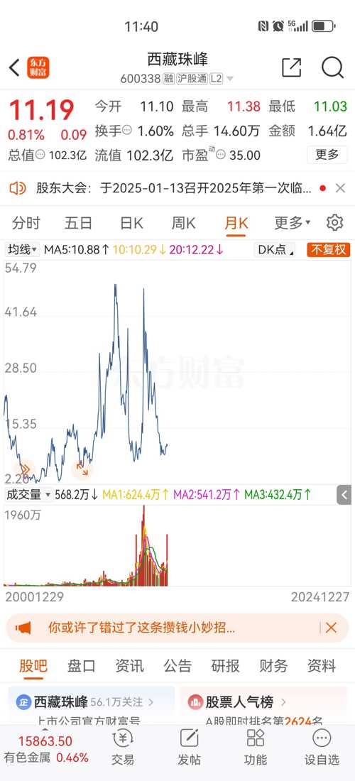 西藏珠峰股吧的市場表現